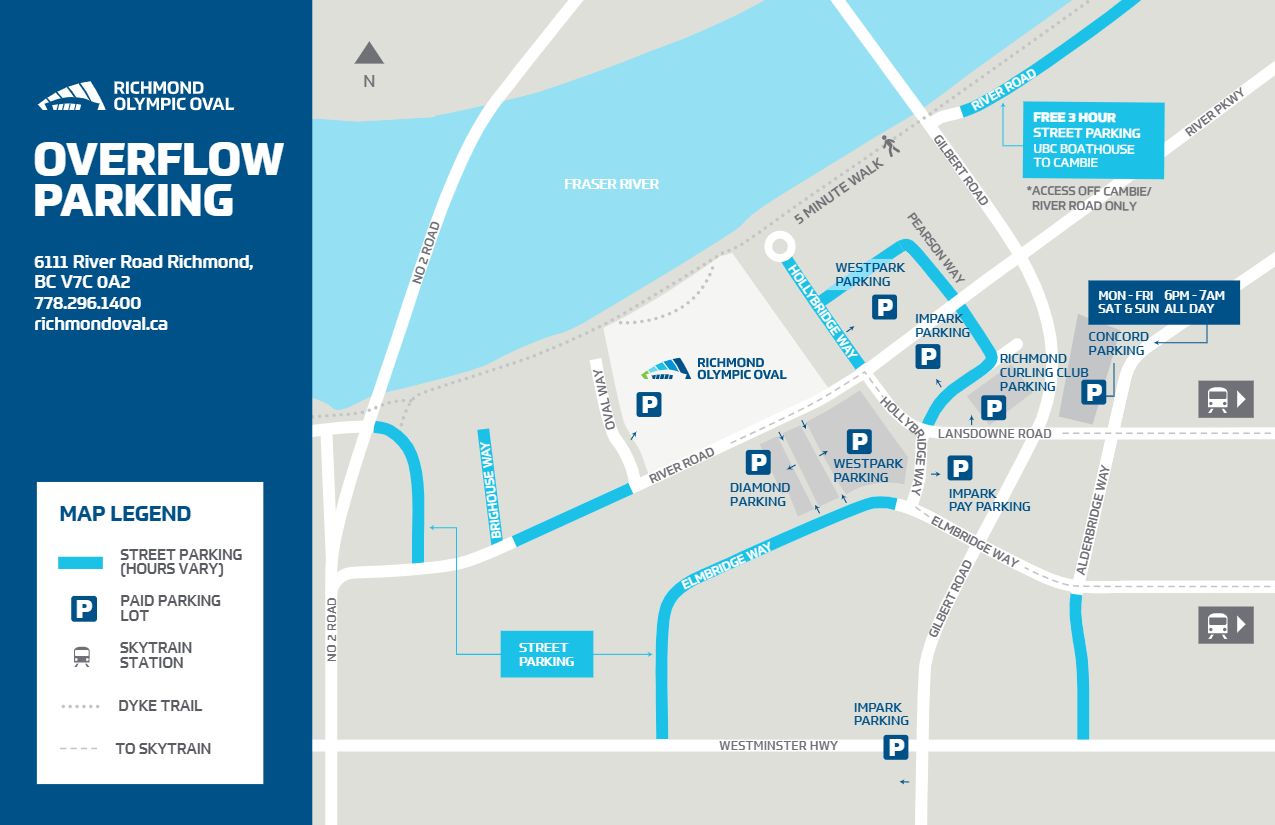 There are 3 major sport competitions taking place March 13 to 15 at the Richmond Olympic Oval. This means parking at the Oval may be challenging. Here are some nearby public parking lots:
